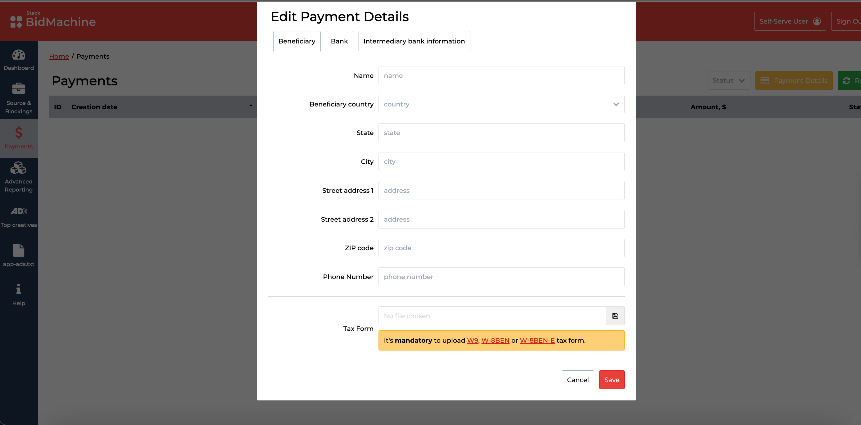 To ensure timely payment, complete your payment details in the BidMachine dashboard.
